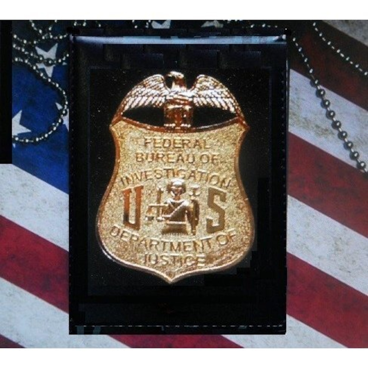 FBI(アメリカ連邦捜査局)のレプリカバッジと革製IDホルダーです。
